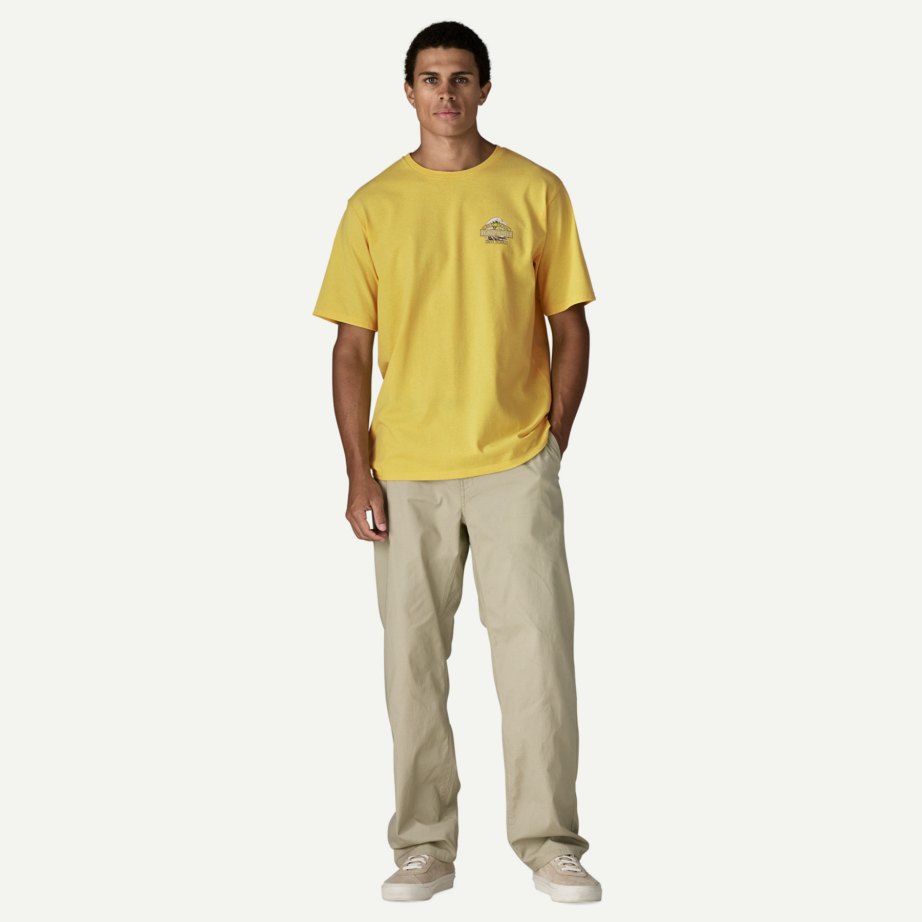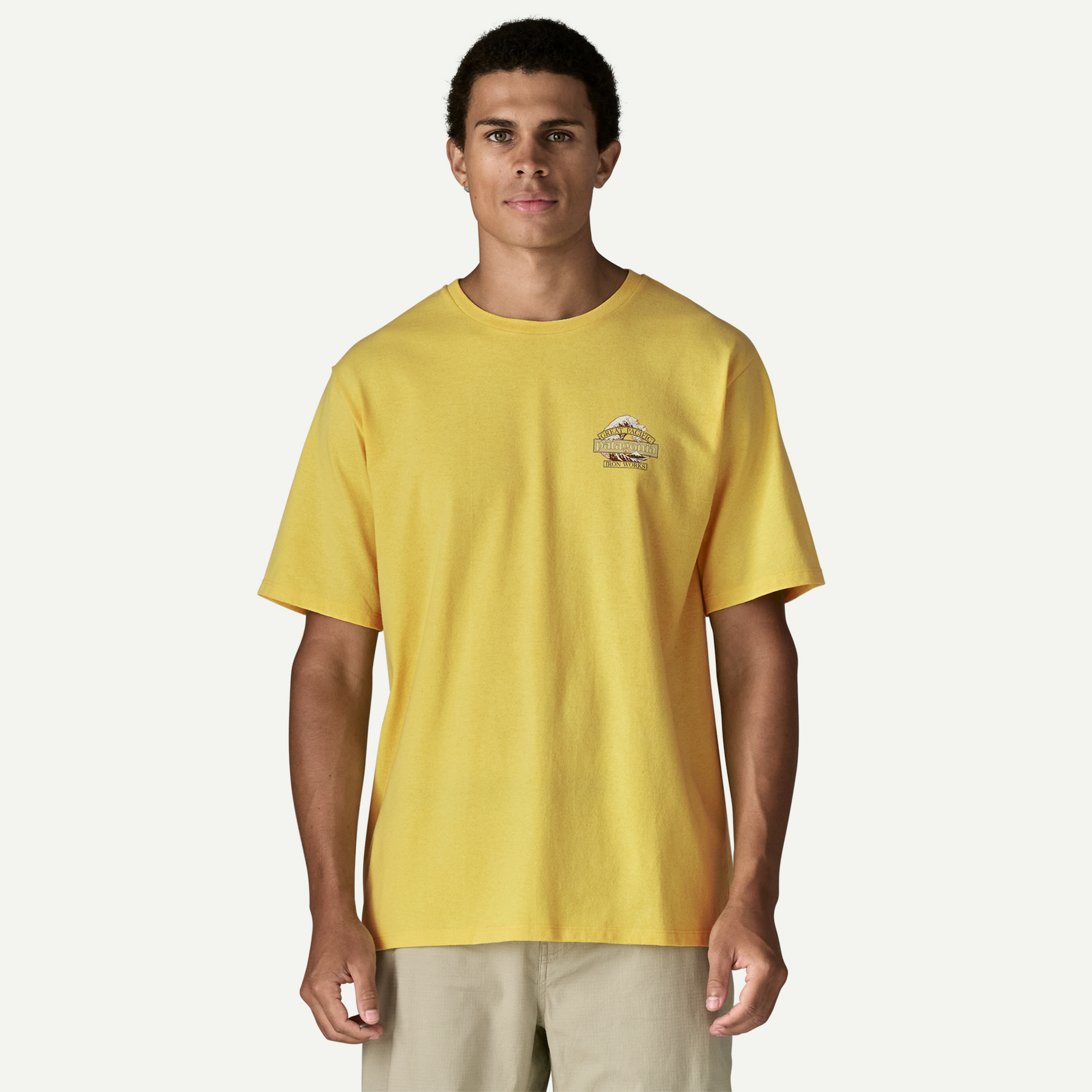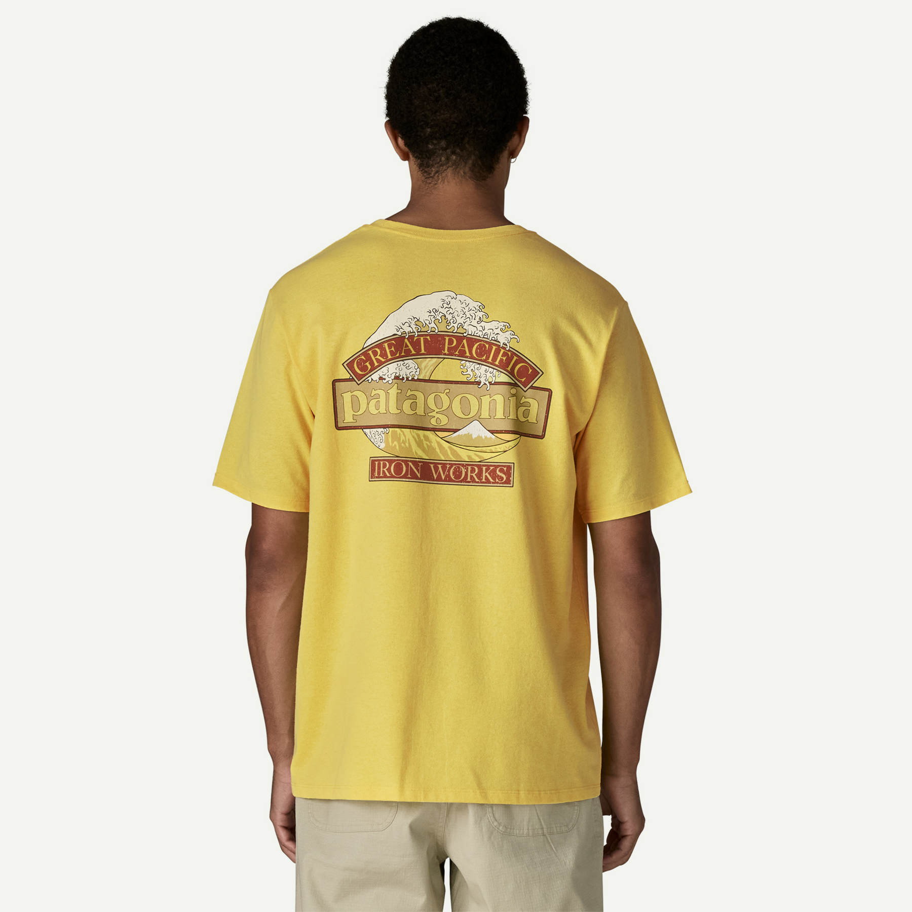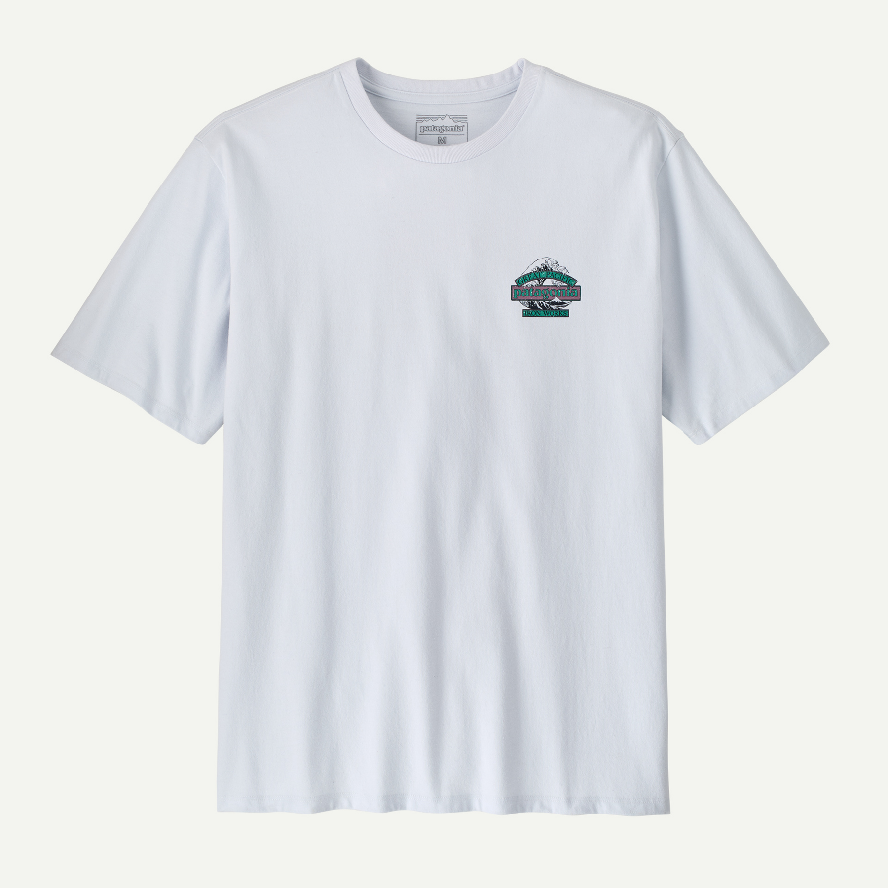 Our Great Waves logo combines Patagonia’s word mark with Hokusai’s iconic wave and Great Pacific Iron Works, the name of our first retail store, which is a short walk from some great waves in Ventura, California. We screen-printed it on the Men’s Great Waves Responsibili-Tee, a classic crewneck tee made of a soft, durable blend of 50/50 recycled cotton/postconsumer recycled polyester jersey. By utilizing fabric scraps and recycled bottles, this 100% recycled garment reduces our reliance on virgin raw materials. Know better; do better. Made in a Fair Trade Certified factory.