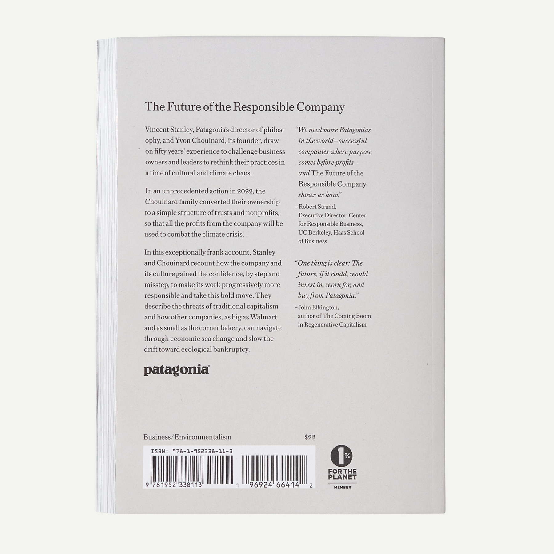 The Future of the Responsible Company: What We’ve Learned from Patagonia’s First 50 Years (by Yvon Chouinard & Vincent Stanley)