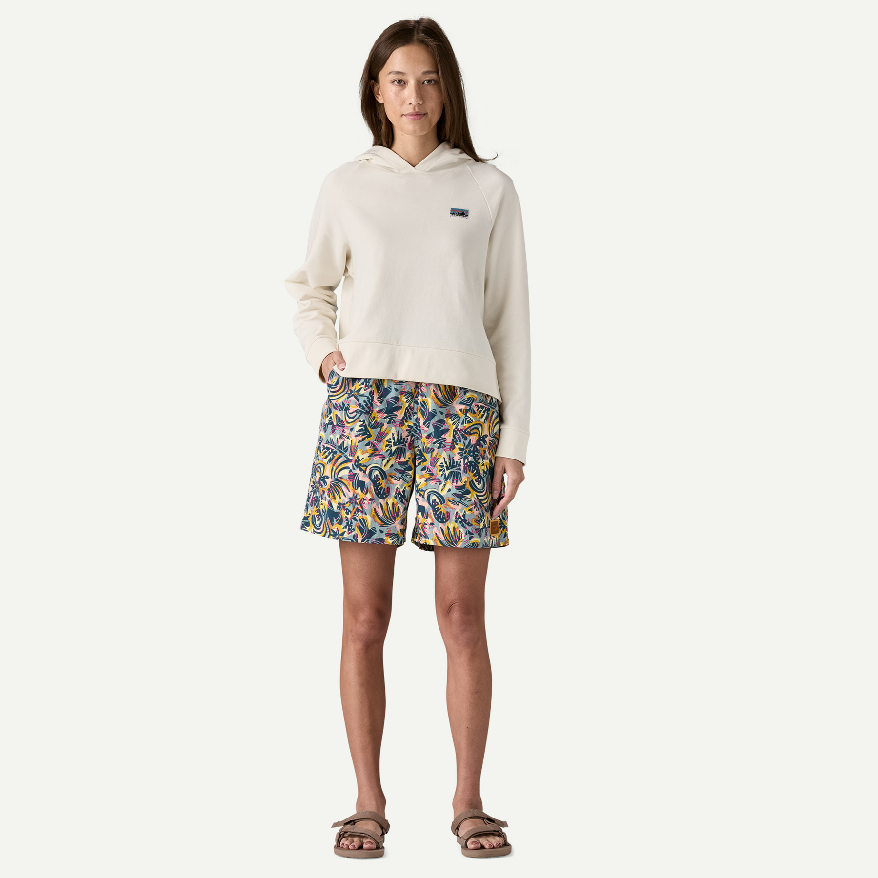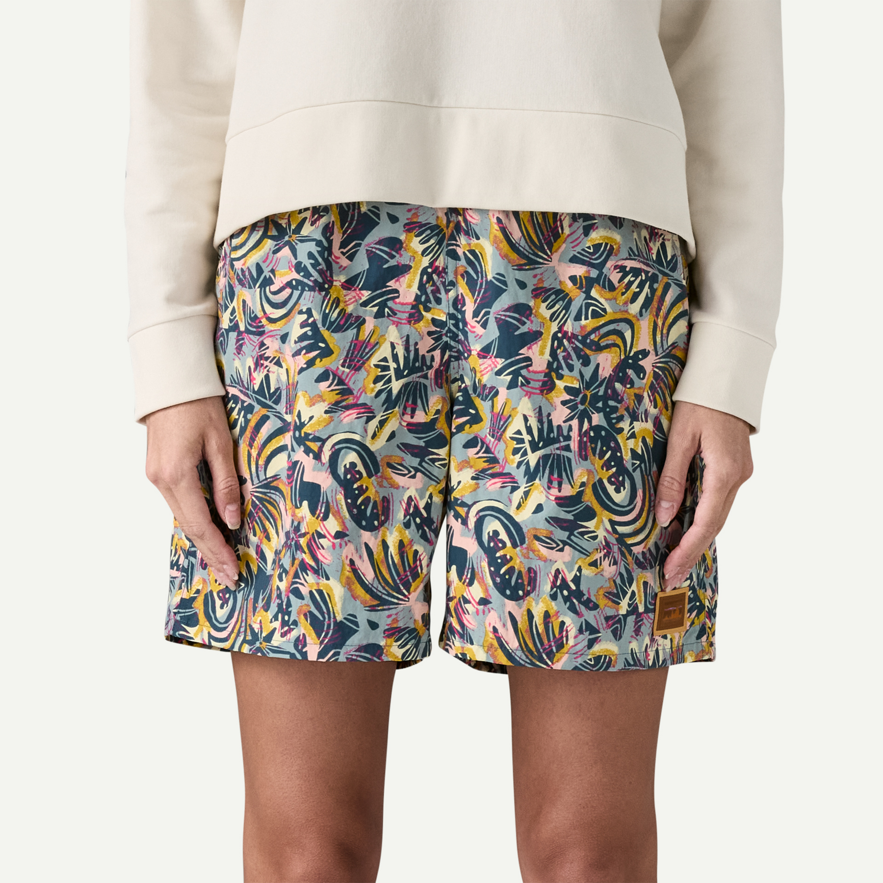 The Women’s Baggies Longs have a longer, modest fit and a higher rise than our classic Baggies for more coverage and protection, with simplified stitching on the waistband for all-day comfort, and a 7″ inseam. They’re built of lightweight, quick-drying NetPlus 100% postconsumer recycled nylon faille made from recycled fishing nets to help reduce ocean plastic pollution; with a durable water repellent (DWR) finish made without intentionally added PFAS to shed moisture. Made in a Fair Trade Certified factory.